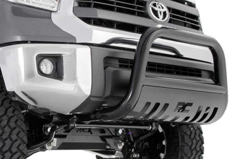 It's the ultimate combination of form and function with Rough Country's durable, new Bull Bars. Protect the front end of your truck with our beefy yet stylish Bull Bar kit. Featuring a 3-inch diameter tube design and corrosion-resistant finish, this Bull Bar package offers superior protection from hazards of the road and trail.