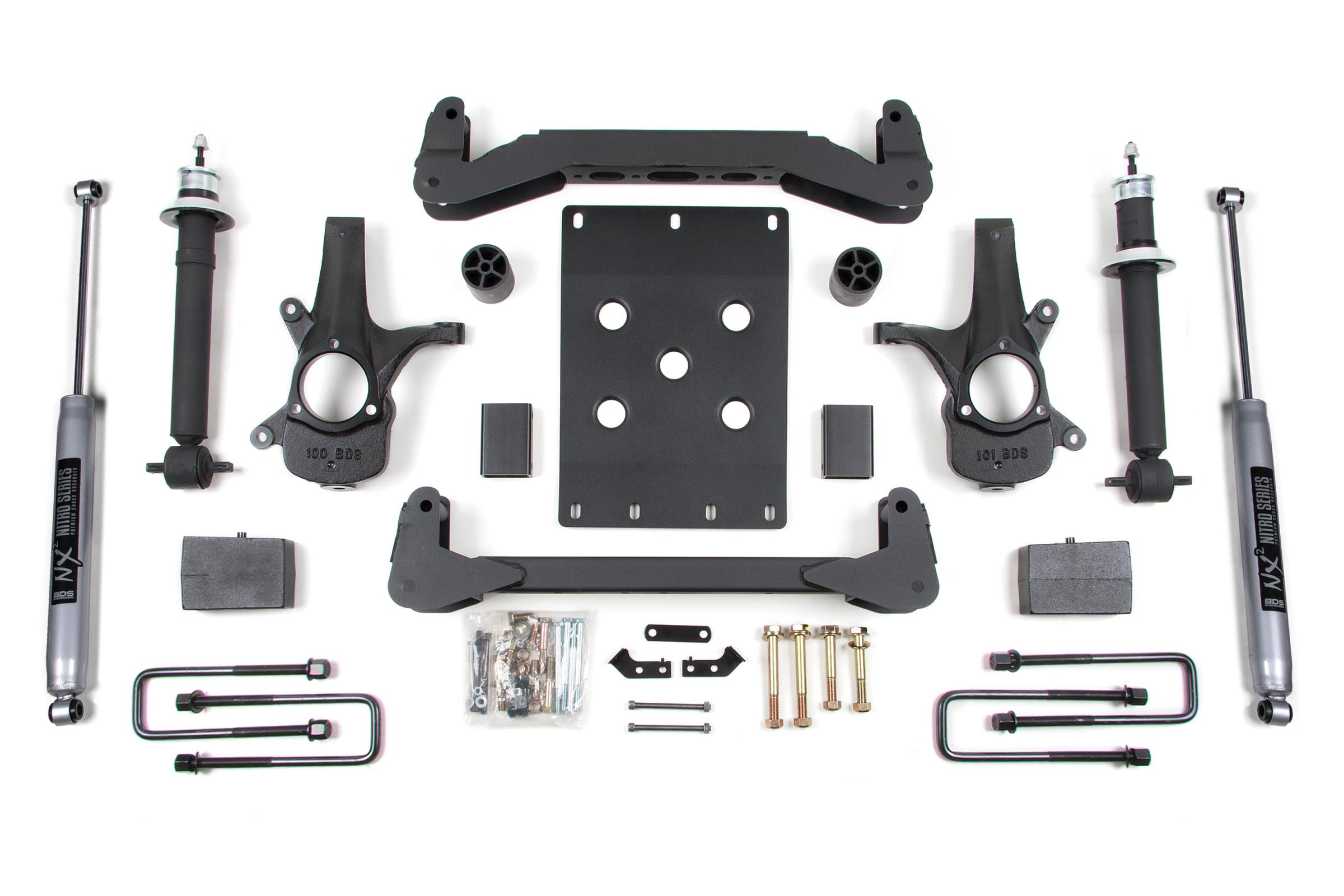 This kit takes advantage of BDS's tried and true high-clearance design for improved ground clearance, strength, and offroad protection while correcting suspension and steering geometry for great on-road handling characteristics.