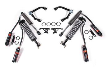 Up front the lift kit includes FOX 2.5 Factory Series remote reservoir coil-over shocks and heavy duty tubular upper control arms for increased strength. In the rear this kit utilizes a complementary set of FOX 2.0 Performance shocks for the smoothest ride.