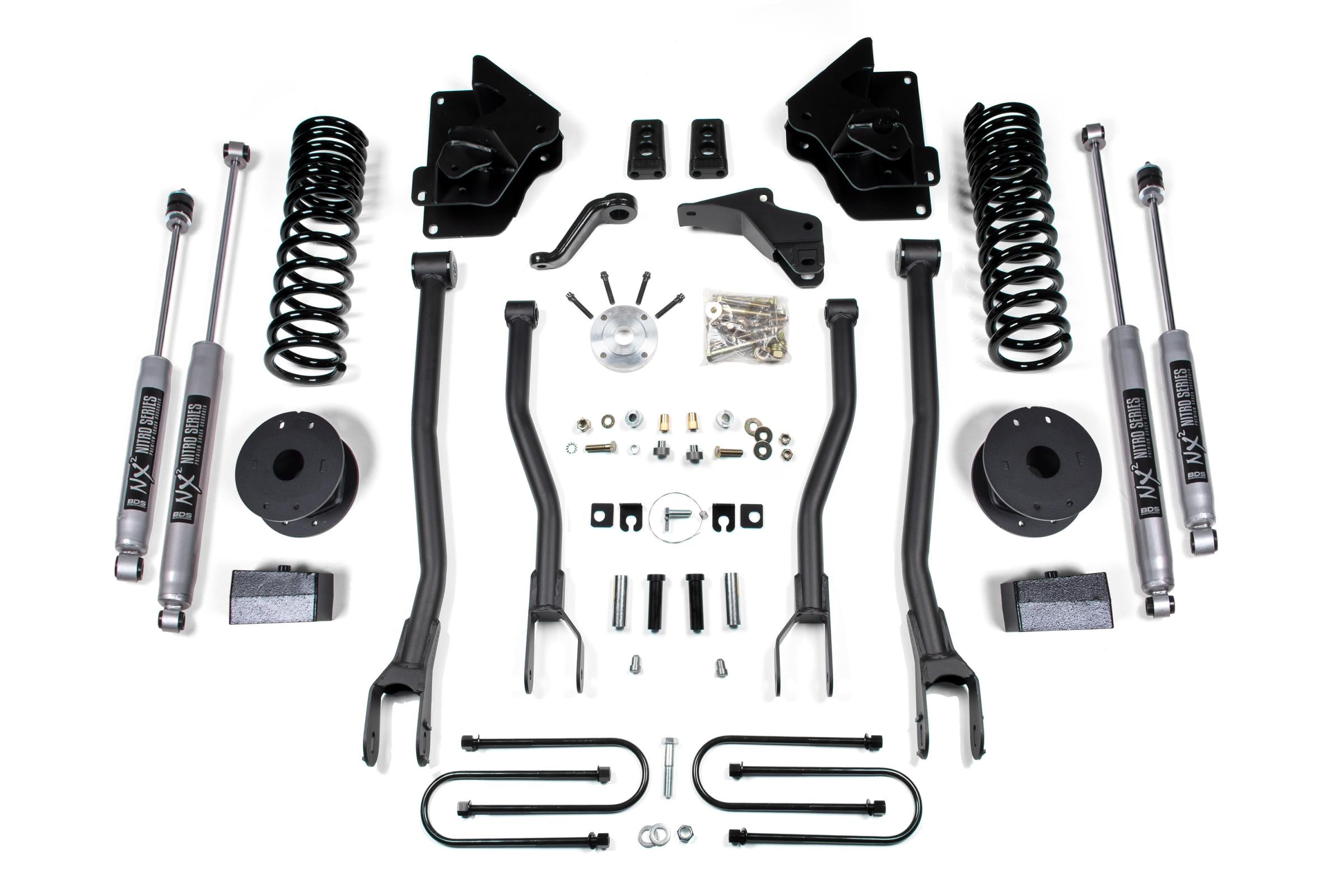 Built to outperform, BDS Suspension engineered a 4-inch lift kit with 4-Link conversion for your 2013-2018 RAM 3500 gas powered truck that will surely impress. Works only on trucks with factory rear air ride option. Designed to improve stance, performance, and capability, this kit includes everything necessary to set your truck up right with clearance for up to 35 inch Tires.