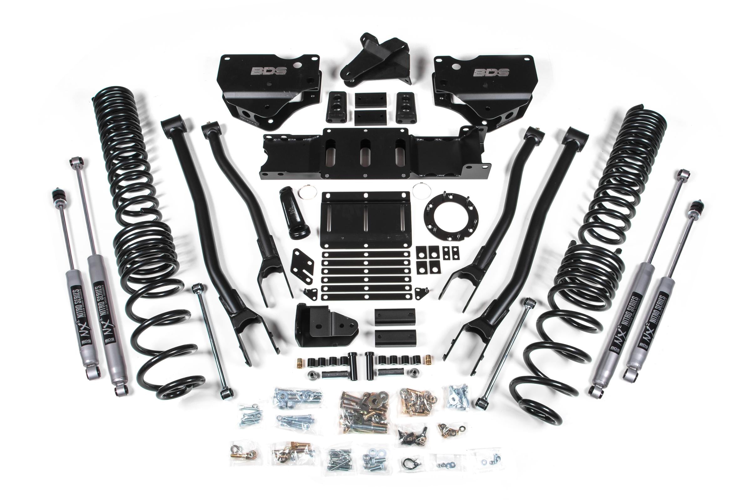Built to outperform, BDS Suspension engineered a 6-inch lift kit with 4-Link conversion for your 2019-2024 RAM 2500 diesel powered truck that will surely impress. Designed to improve stance, performance, and capability, this kit includes everything necessary to set your truck up right with clearance for up to 37 inch Tires.