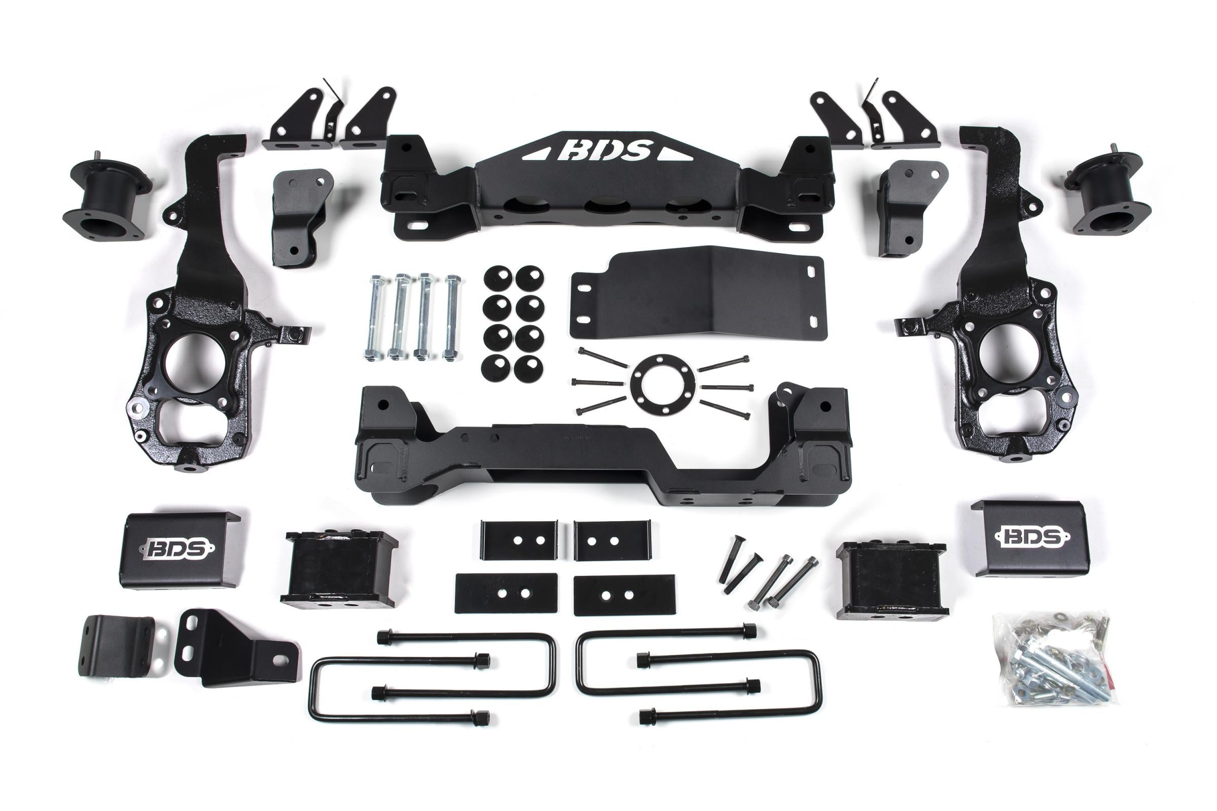 This kit takes advantage of BDS's tried and true high-clearance design for improved ground clearance, strength, and offroad protection while correcting suspension and steering geometry for great on-road handling characteristics.