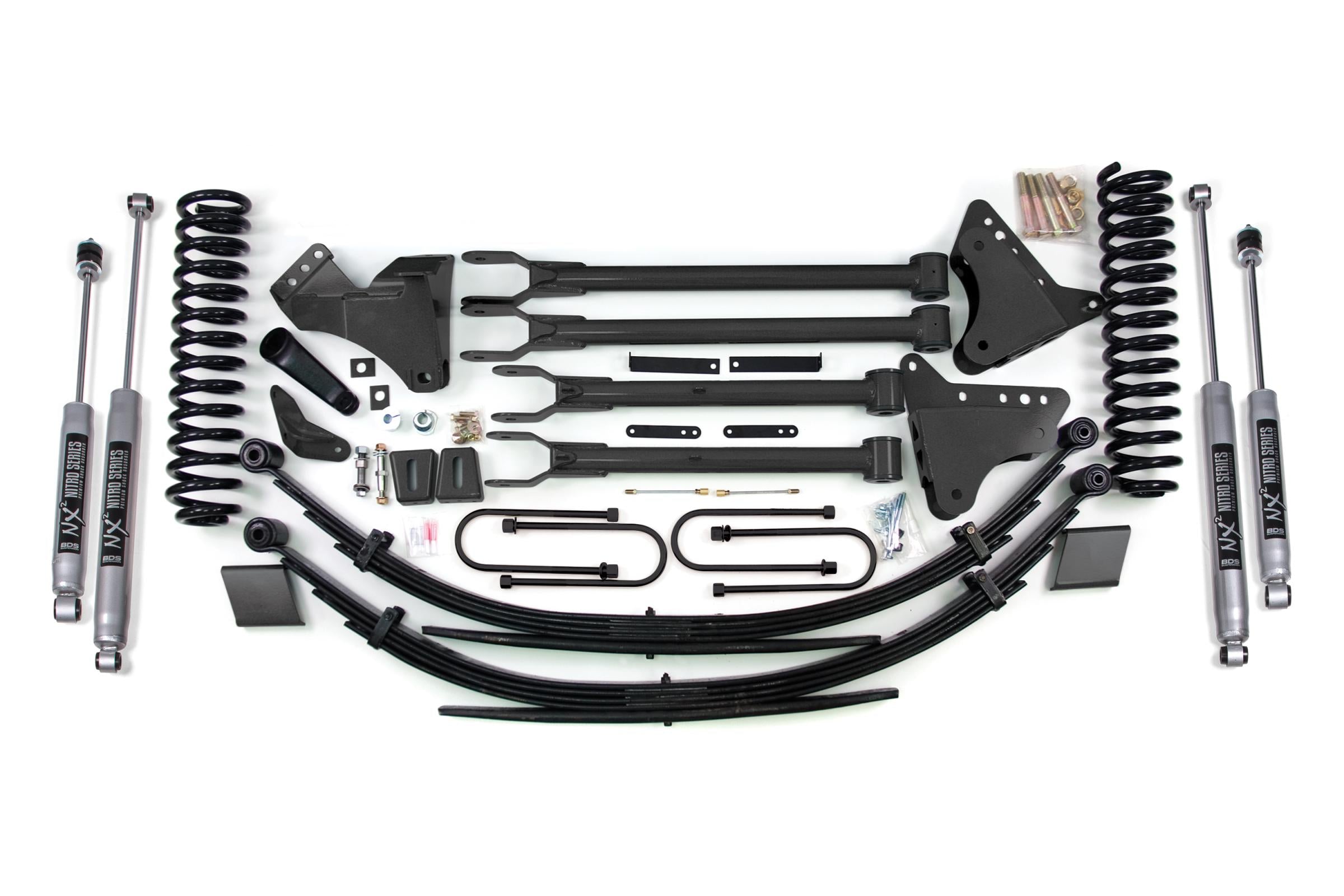Raise the bar with a BDS Suspension 8-inch lift kit and 4-link conversion for your 2008-2010 Ford Super Duty F250 and F350 gas truck. Designed to improve stance, performance, and capability, this kit includes everything necessary to set your truck up right with clearance for up to 38 inch Tires.