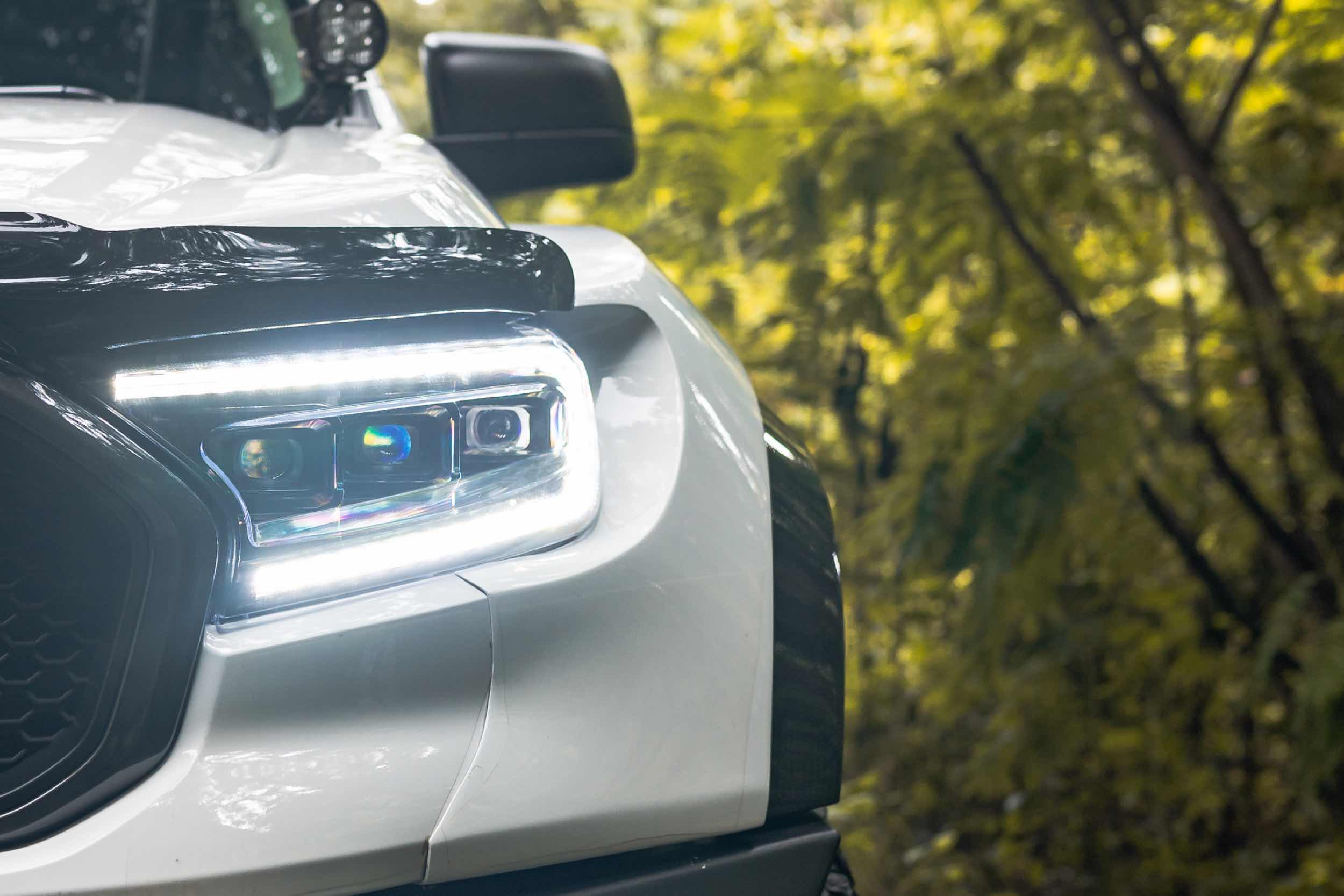 Much Needed: Whether you are working on building a Ford Ranger up for to be a road warrior or trail blazer, there's one thing that the original headlights lack... and that is: Everything. So what does your truck need? Triple Bi-LED headlights with a crazy bright daytime running light, a sequential turn signal, blacked out internals, and a fantastic beam pattern. The Morimoto XB LED headlights for the 2019-2023 Ford Ranger will do the trick! Six Low Beams and Six High Beams: First things first. These are the first and only set of headlights in the entire Morimoto XB lineup that use not one, not two, not three, but three Bi-LED projectors. Yes that is three low beams, and three high beams to provide you with maximum output. These things are much brighter and wider than the stock halogen or LED headlights, and will also out-perform other options out there in the aftermarket too. Start up Sequence: And if the optical upgrade isn't enough for you, then surely the special start-up sequence on the projectors will reel you in. When the Daytime Running light kicks on, the projectors illuminate in a two-stage sequence before turning back off. While it does absolutely nothing for performance, you can't deny the cool-factor! Daytime Running Light: Their LED daytime running light is powered by Osram 5000K LEDs and is insanely bright, easily visible during the day. The turn signal function uses the same optics paired with amber LED chips to produce a full sequential setup that's equally sexy. For those who are a bit more traditional... Yes... they can also be setup to run as solid on/off style signal too. DOT Approved: Make no mistake, these will produce a much better result than slapping some LED replacement bulbs into your stock headlights. Their triple-projector optics meet & exceed all SAE, DOT, and FMVSS108 regulations when aimed properly... and that's easy to do with their integrated adjusters. US market lights will be equipped with amber side markers as well. Plug and Play: Wiring is easy too! The Morimoto XB Ranger headlights are designed to work on your truck without any modifications. They will plug into the factory connectors for the stock headlights. No error codes, no flickering, hyper-flashing, or radio interference. They can easily be removed and will not void your factory warranty. These headlights will work with trucks that came stock with the basic halogen headlights, and the higher-end version with the projectors and LED DRL.