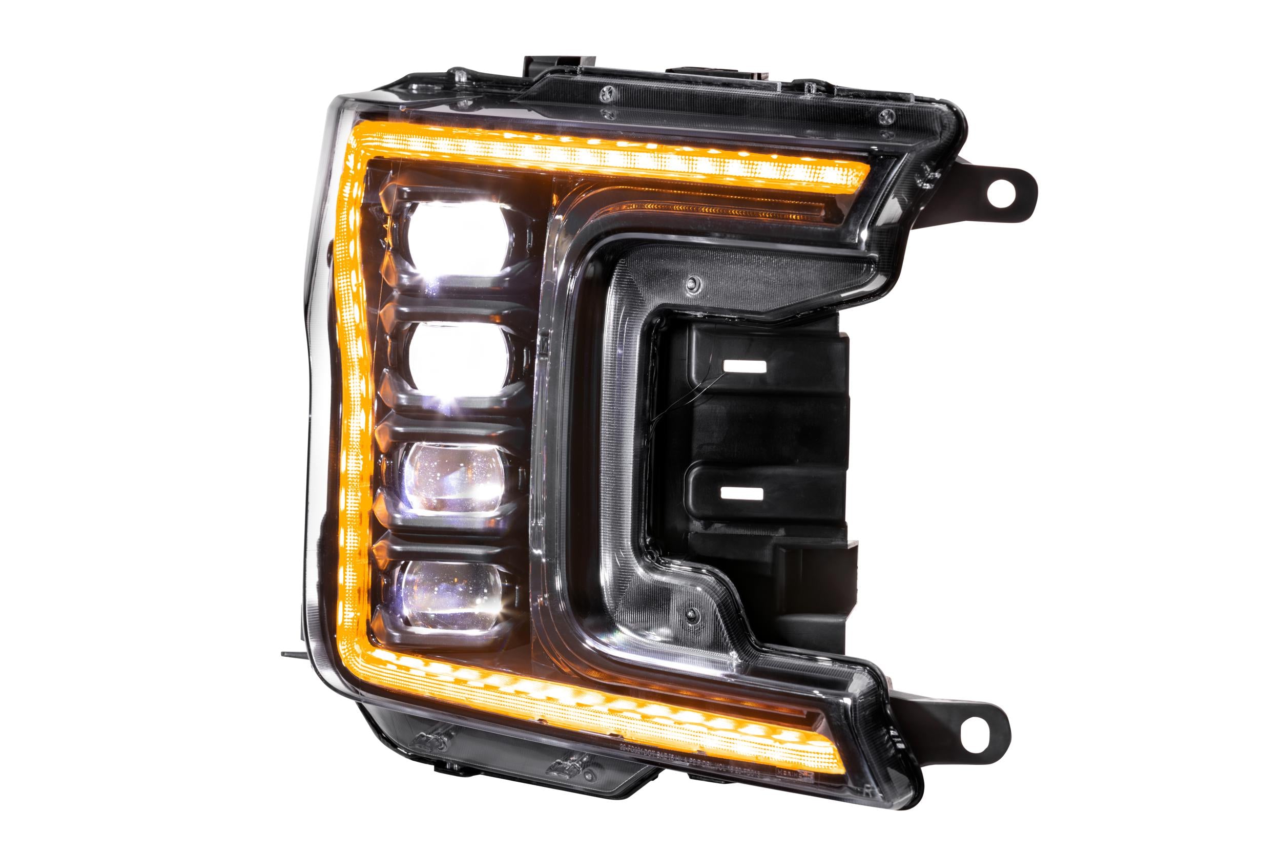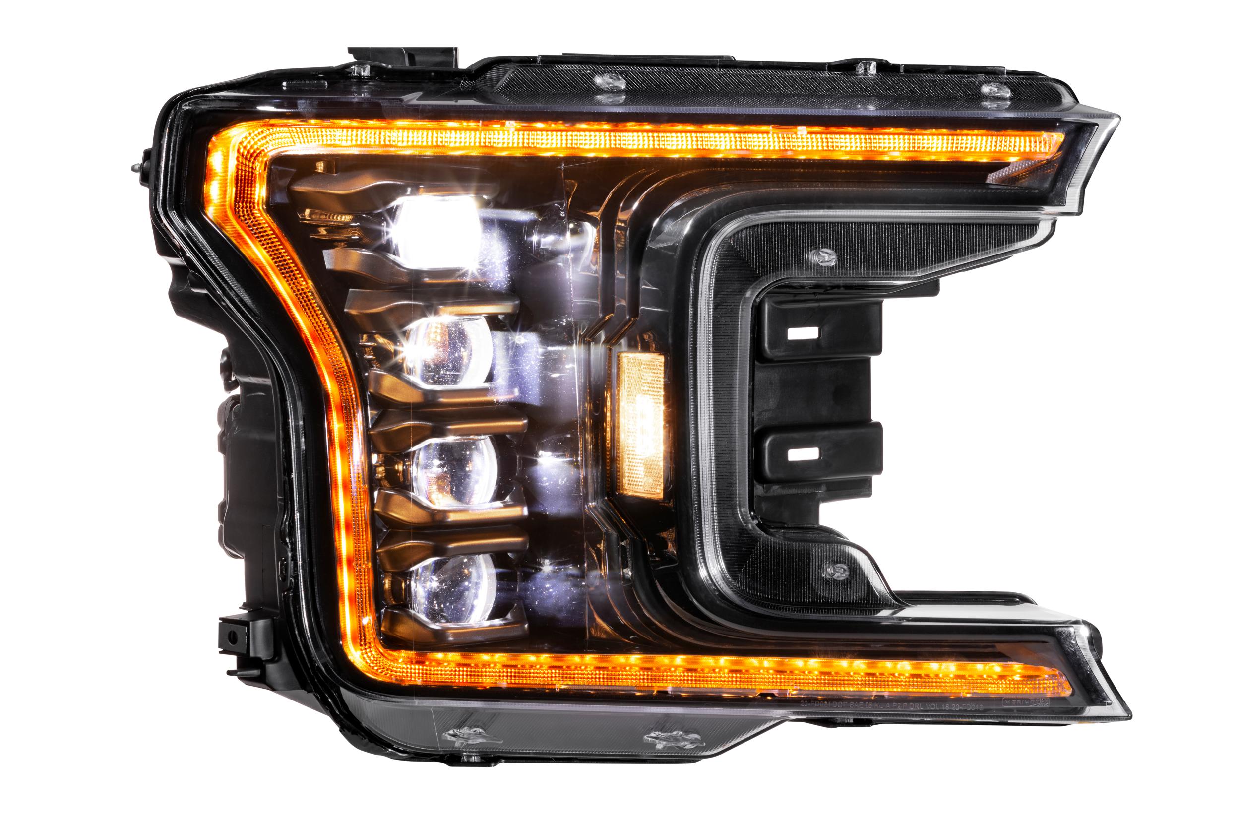No Substitutes: If you're still running oldschool halogen headlights on your 18-20 Ford F150, then you're just behind the times! If you're running a set of different aftermarket headlights, well, these should make you second guess that decision. The second gen Morimoto XB LED F150 headlights: Look amazing. Are well-built. Have a virtually infinite life span. An unbeatable warranty, and out-perform all of the alternatives. Easily making them the best LED headlights on the market today for the F150.Second Gen Update: The 18+ F150 XB headlights broke the internet when they came out... and while they were the undisputed king for quite a while, other options from brands like Alpharex came out that offered a little more light. In true Morimoto fashion, nothing gets left alone for long and now there is no question: The XB LED Heads for the F150 are back on top, and will be hard to top, period!More Light Output: The original F150 XB heads used two projectors on top for the low beam, and two on the bottom as a dedicated high beam. The new setup utilizes all four projectors for the low beam and has a dual Bi-LED setup for the high beam. The results? 200% more light output and a better distribution of light for improved visibility in the distance and off to the sides of the road. Asked and answered!Start-Up Sequence: And if the optical upgrades weren't enough, the cool start up sequence has been added too. When the Daytime Running light kicks on, the projectors illuminate in a two-stage sequence before turning back off. A video is worth a thousand words here... so make sure to watch the one embedded in the listing to see that in action! While it does absolutely nothing for performance, you can't deny the cool-factor!DOT Approved: Make no mistake, these will produce a much different better result than slapping some LED replacement bulbs into your stock housings. Their quad-projector optics meet & exceed all SAE, DOT, and FMVSS108 regulations when aimed properly...and that's easy to do with their integrated vertical adjusters. US market lights are equipped with amber side markers. Plug-n-Play: Wiring is easy too! The Morimoto F150 LED headlights are designed to work on your truck without any modifications. They will plug into the factory connectors for the stock headlights and each assembly includes all necessary connectors, rubber seals, and pigtails for a plug n play install. No error codes, no flickering, hyper-flashing, or radio interference. They can easily be removed and will not void your factory warranty. Sequential LED DRL: Game Changer! Their LED daytime running light is powered by Osram 5000K LEDs and is insanely bright, easily visible during the day. A separate optic that's dedicated to the turn signal function uses amber LED's to produce a full sequential turn signal. While that feature will cause others to mistake your truck for an Audi; for those who are a bit more traditional they can also be setup to run as solid on off style signals too.Well-Built: Their UV-coated polycarbonate lens will resist the test of time, ensuring your truck's new headlights will look good as new for many years to come. The PPS plastic housing is light-weight and much stronger than comparable alternatives. The die-cast aluminum heat-sinks inside the housings provide more than an adequate amount of cooling for the OEM grade Osram LED chips that produce the light. These use the same external housing lens from the gen one version, and those have held up like OEM after a few years on the market.OEM Plus: We live, eat, and sleep headlights. While the F150 LEDs from Morimoto cost a bit more relative to other options in the aftermarket; as the saying goes "you pay for what you get". We've seen it all, and their fit and finish is far superior to everything else out there. Guaranteed. They Look: Amazing. At least in our opinion! The design of the second Gen F150 LED heads was inspired by the OEM LED headlights from the new Ford Expedition. The subtle elements incorporated in their design are more than enough to make them stand out, but they're clean enough to be considered top of the line original equipment to those who don't know any better. The piano black trim and smoked gray diffusers keep the color scheme neutral, and the quad kuria-optic projectors are as modern as it gets.Variant - XB LED Headlights: Ford F-150 (18-20 Amber DRL Set) Features: