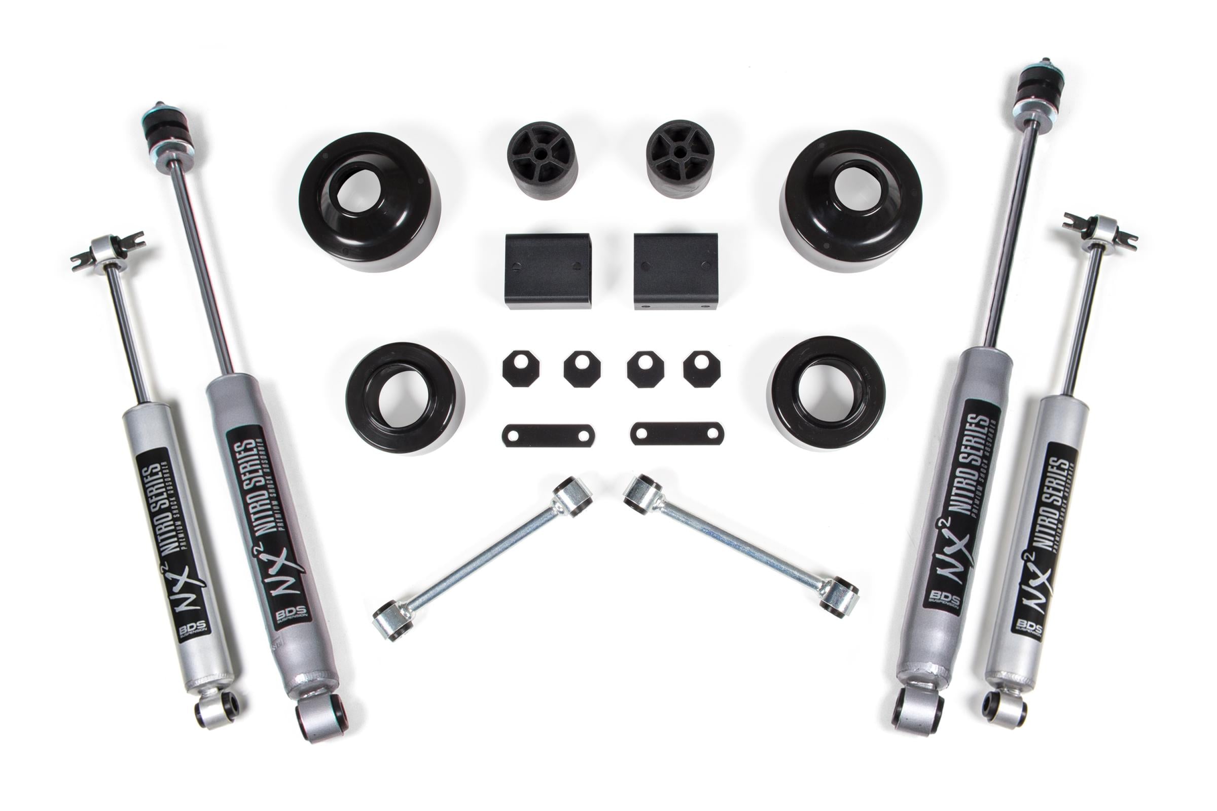 Boost the height of your 2007-2011 Jeep Wrangler JK 2 Door by installing this 2-inch coil spacer lift kit from BDS. Designed to improve stance this kit includes everything necessary to set your truck up right with clearance for up to 33 inch Tires at an affordable price.
