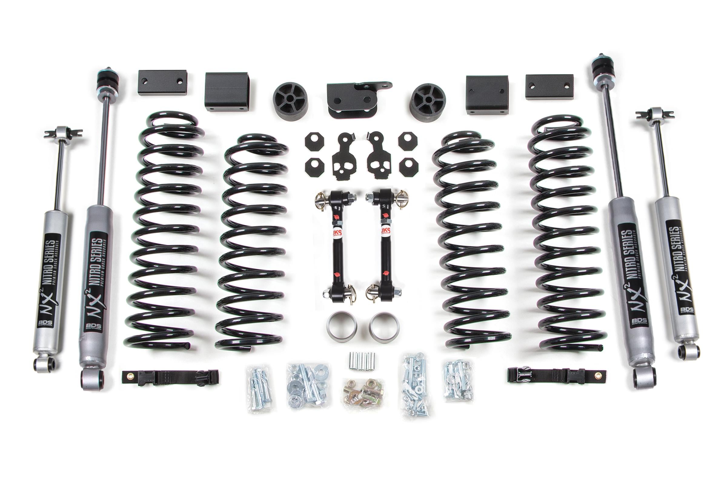 Upgrade the ride and style of your 2012-2018 Jeep Wrangler JK 2 Door with this 3-inch coil spring lift kit from BDS Suspension. Designed to improve stance this kit includes everything necessary to set your truck up right with clearance for up to 35 inch Tires.