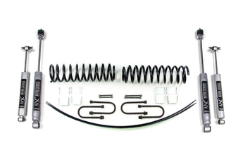Up front the lift kit includes Glide-Ride coil springs and the rear utilizes a long thin add-a-leaf to add height without creating a harsh ride. These kits are rounded out with your choice of specially tuned NX2 nitro series gas shocks or FOX 2.0 Internal Floating Piston performance series gas shocks to offer improved damper performance.