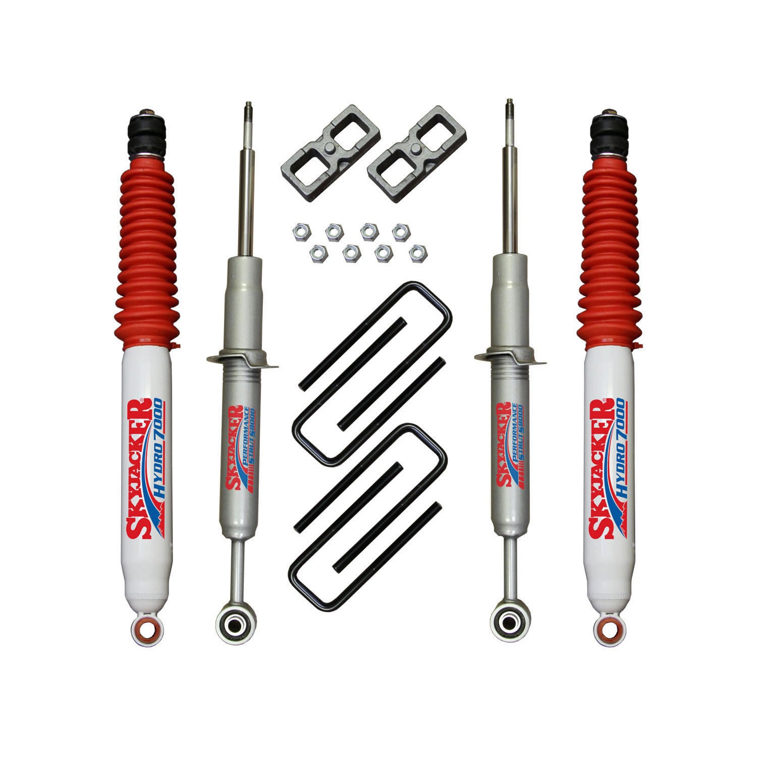 Suspension Lift Kit w/Shock 3 Inch Lift 07-19 Toyota Tundra Incl. Front Struts Rear Lift Blocks Rear U-bolts Rear Hydro 7000 Shocks Skyjacker