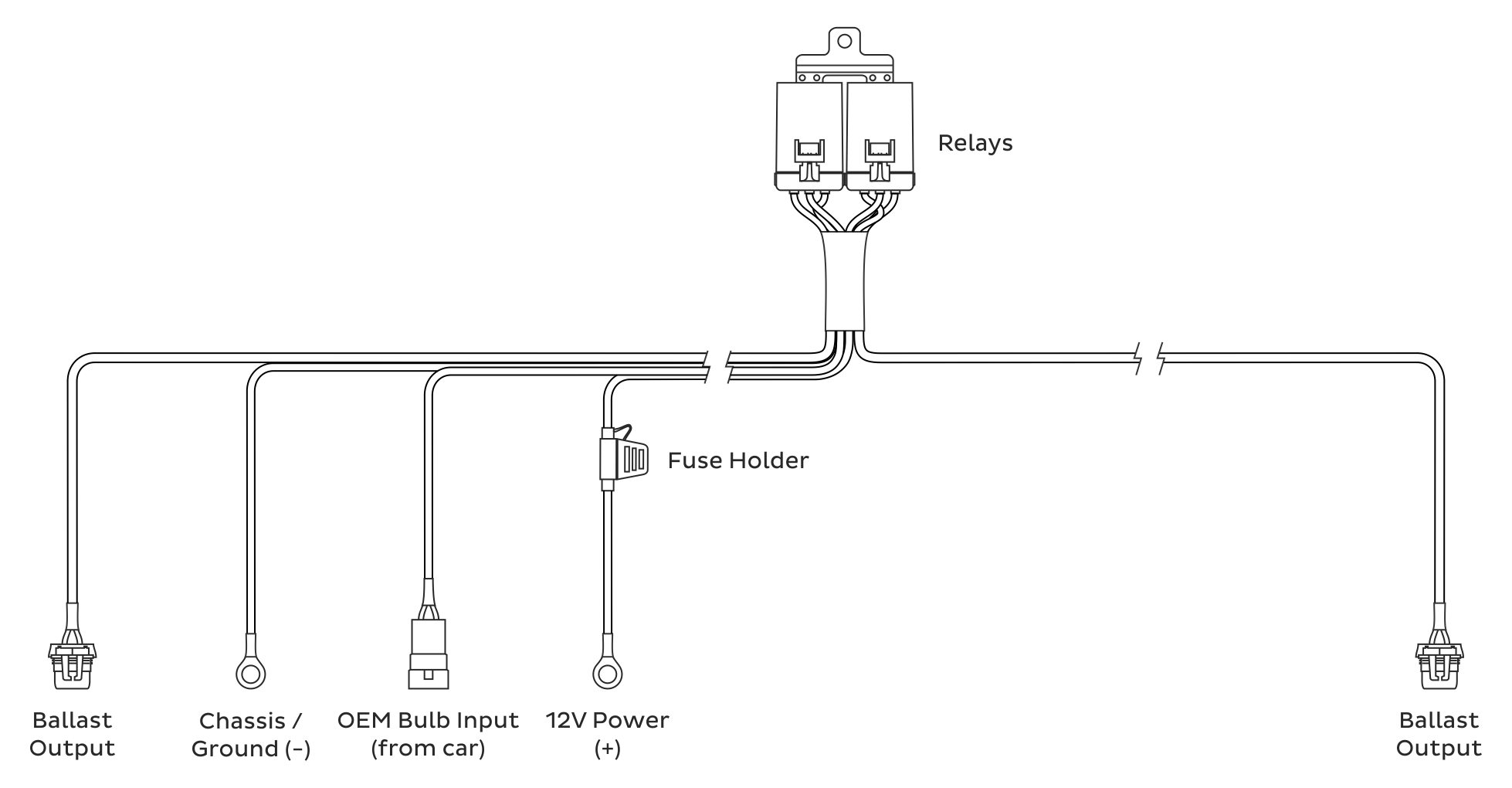 Reality Check: Customers often ask, Do I really need a harness? Yes! A relay harness is designed to deliver steady voltage to your HID ballasts directly from the car battery. Nobody likes a flickering headlight, so why risk it? Factory headlight outputs are really only designed to power a halogen light bulb, not an HID ballast. Don't Skimp: As one of the most important parts in any HID lighting upgrade; don't skimp out when it comes to your wiring. It doesn't matter how good your ballasts are. how good your bulbs are. If your harness is a piece of crap: when it gives out your headlights are gonezo. The Morimoto HD Relay harness is easily worth the premium price compared to cheaper alternatives. Plug n Play: The layout of the harness makes it easy to install. With just a few simple connections, even your mom could set this thing up! Wire lengths are long enough to be used in everything from compact cars to SUVs and it's designed to be 100% plug and play (no cutting or splicing needed). Compatible: The HD relay can be used for low beams, high beams, or fog lights on most vehicles. The harness uses industry-standard outputs for compatibility with 99% of ballasts out there, and all of the ones we offer here at our shop. Note, if your vehicle has a can-bus system or a finicky pulsed headlight circuit - check out the Standalone Canbus or Mopar Spec harnesses from Morimoto Fail-Safe: Unlike most generic harnesses out there that rely on a single low-quality relay to power both headlights, the Morimoto Harness utilizes one relay per side- so if one did happen fail, you wouldn't be left completely in the dark. Each 40A relay is completely sealed against the elements using ribbed silicone upper and lower seals, and has an flywheel diode for back-EMF protection. Every other connection harness-wide is sealed with the proper silicone grommets. Live somewhere with weather that regularly sucks? No problem. OEM Grade: Aside from being ahead of the game from a technical standpoint, the HD relay is also a work of art. With it's wiring protected by abrasion-resistant Techflex mesh sleeving and OEM-style relay cubes held together by a mounting bracket cut from polished stainless - the HD relay will look factory fresh under the hood!
