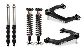 There is no guesswork. Cognito components are engineered, manufactured and assembled in the USA. The Cognito 1 inch Performance Ball Joint Leveling Kit includes the Cognito Ball Joint SM Series Upper Control Arm Kit, Elka Coilover front shocks and Elka rear shocks- all with hardware included.