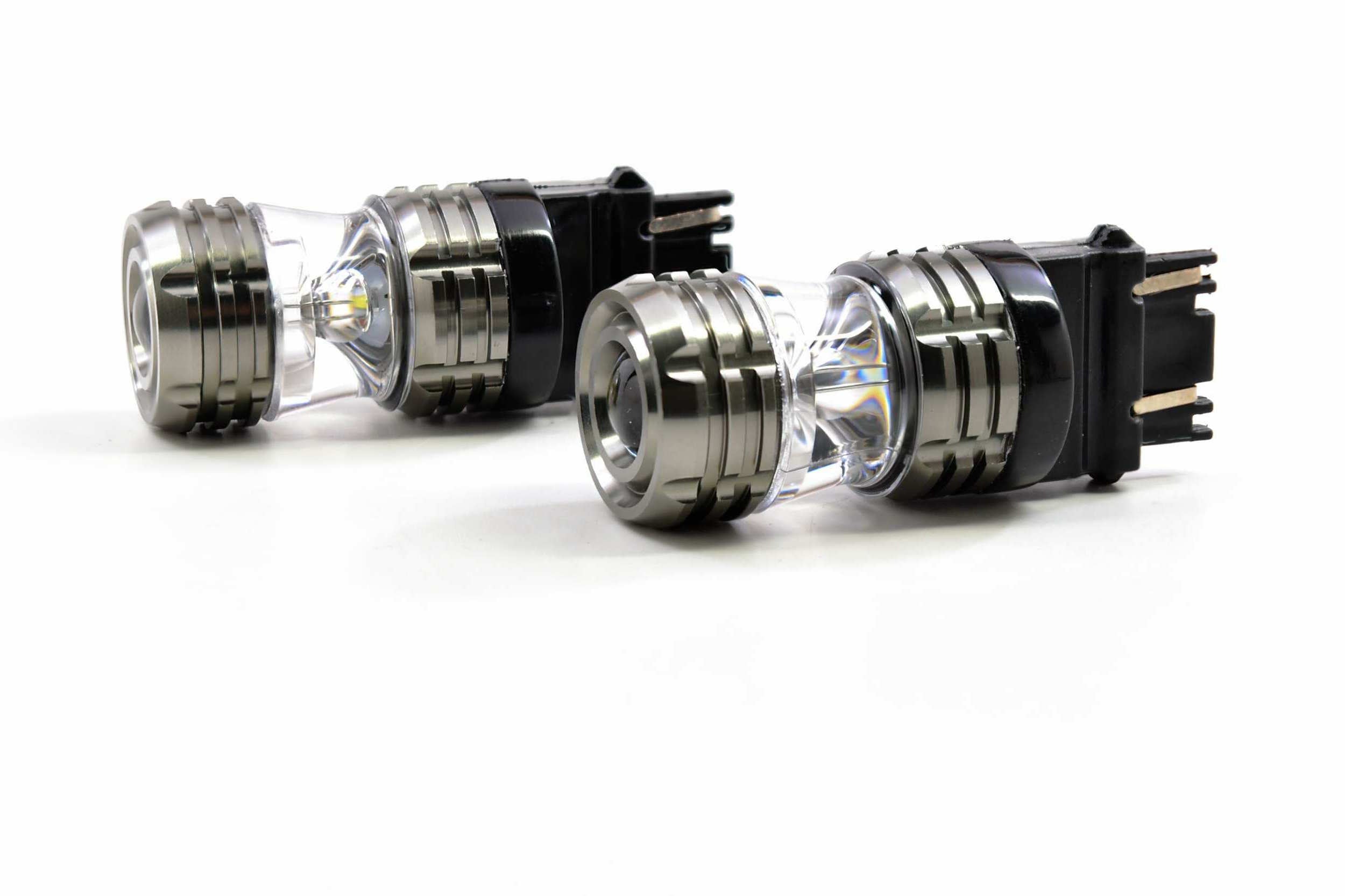 Morimoto: Has always been our go-to-guys when it came to HID, and when they released their line of LED products, we had our doubts. Performance left a little to be desired compared to some of the more refined models on the market. BUT (and thats a big BUT) that has since changed with the new X-VF (Virtual Filament) bulbs! While in all-honesty Morimoto didn't exactly nail it the first time around with the XB LED bulbs, what we have from them today is about as modern as it gets and much more in-line with the quality and performance we've all come to expect from the brand. Instant: Beautiful, bright light. Nearly infinite life span. Great for signal, marker, brake, and tail lights. Morimoto's new X-VF 3157 LED bulbs are an instant upgrade in the looks and performance for the lighting on your car from bumper to bumper. So What's new with Version Two? Whereas the now discontinued XB bulbs were really only designed to "look cool" and be "bright" - we all know the saying "power is nothing without control" and that was really the focus behind the new X-VF bulbs. They utilize far more refined optics that distribute light in every direction, most notably improving the side and rear-ward spread. What that means for you? By making full use of all the facets in any turn/brake signal housing - They're way brighter! (and they still look cool!) Fade-On-Function: Morimoto's new fade-on function drivers are pretty unique too compared to any other bulbs on the market. Utilized on the switchback version of the XV-F bulbs, the drivers gradually ramp up the intensity of the white when it kicks back on after the amber signal is turned off. A small detail, but a neat one none the less. Make Contact: Thin wire contacts? CK? Non CK? All of that is so 2015! To ensure perfect contact at the base of the bulbs, Morimoto has spec'd fat boy (aka wide) contacts - which are much less likely to bend out of the way or break off. In addition, there is now NO NEED to worry whether you have a CK or Non-CK circuit - since the drivers are now universal. We think that in and of itself is an amazing convenience. Ford and Toyota Vehicles: There is known issues with how the factory wiring functions using the X-VF switchback bulbs. Because of these known issues, we cannot recommend them for Ford or Tacoma / Tundra vehicles at this time. Can-bus: The X-VF LED bulbs are can-bus friendly and should not cause "lamp out" errors in MOST applications. If however your vehicle requires more resistance, we recommend using the Morimoto HD Load Resistors which will instantly and safely resolve any issues there. Protected: Heat management is crucial for reliability when it comes to LEDs. Using just six LED chips to produce peak output, the X-VF LED generates less heat compared to other bulbs that sometimes use up to 48 chips. The CREE XB-D LEDs are mounted inside the lens, which sits atop a ribbed aluminum heat sink. Inside; an integrated thermal resistor reduces output as a secondary level of protection. ww.cree.com/~/media/Files/Cree/LED-Components-and-Modules/XLamp/Data-and-Binning/XLampXTE.pdf">Data sheet on the emitters that Morimoto uses in the X-VF LED bulbs.