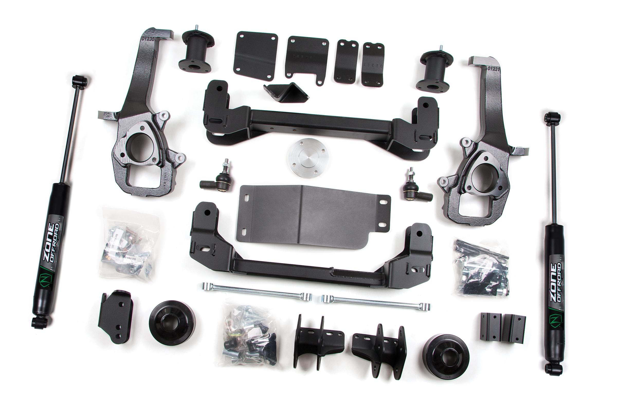 Take your Ram 1500 to new heights with this 4 Inch lift kit from Zone Offroad. Kits include everything needed from high strength crossmembers and steering knuckles to strut spacers and rear coil spacers to level out the stance.